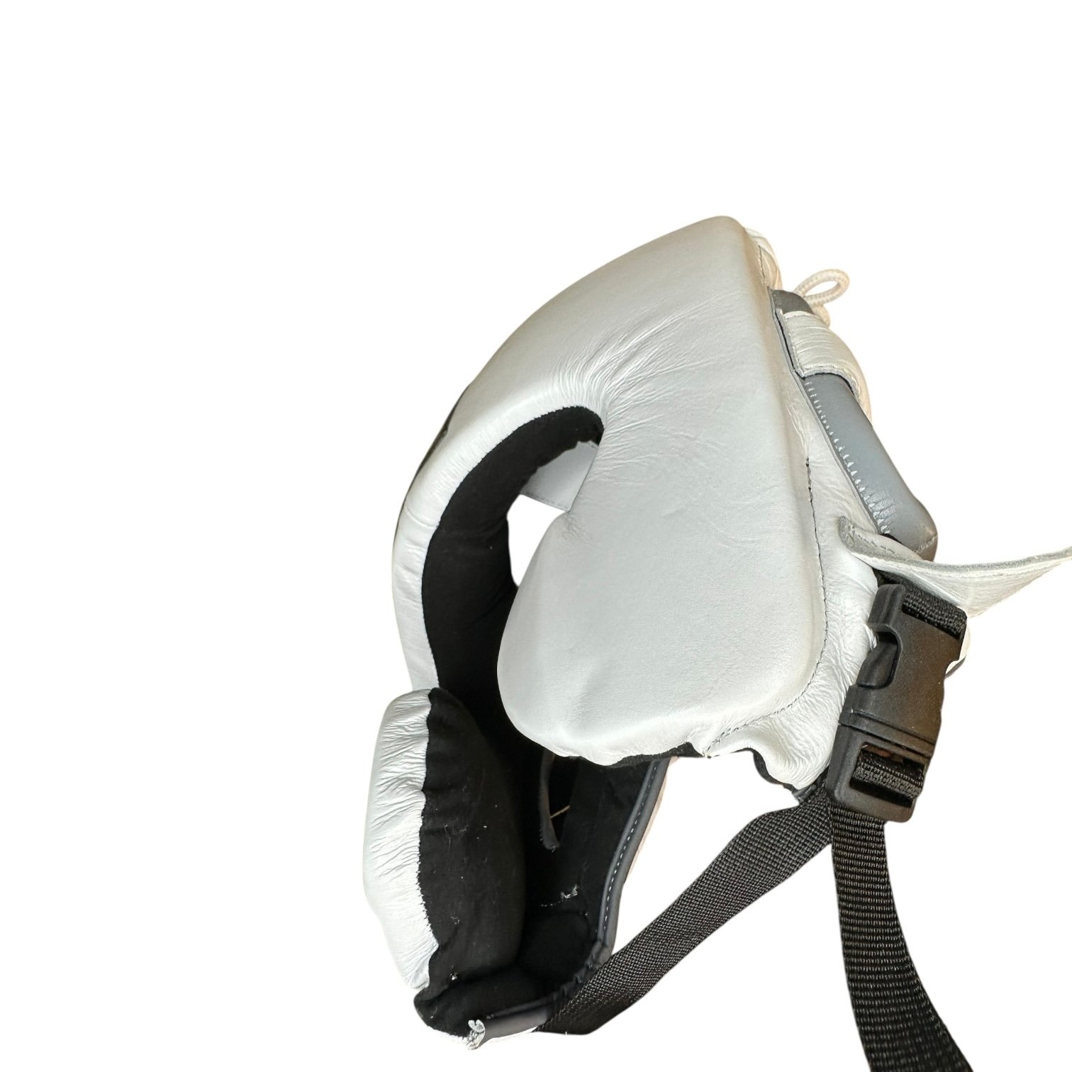 Tycon Sports Professional Boxing Headguard | 100% Cowhide Leather White & Gray